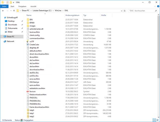 Unterverzeichnis des WinLine-Serververzeichnisses der Ordner "EWL" angelegt,