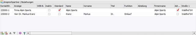 Im Register "Ansprechp." der Interessentenverwaltung werden Ansprechpartner und Beziehungen des Interessenten verwaltet.