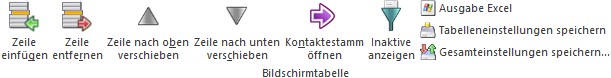 Die Spalten der Tabelle entstammen großenteils dem Kontaktestamm und werden dort detailliert beschrieben. Somit wird hier nur auf speziellen Felder eingegangen.