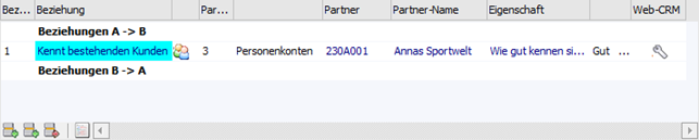 Durch Anwahl des Buttons "Zeile B->A einfügen" kann eine neue "B zu A"-Beziehung angelegt werden.