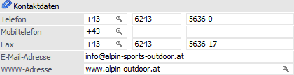 Hier können die Landesvorwahl, die Ortsvorwahl und die Telefonnummer für Telefon, Mobiltelefon und Fax eingetragen werden.
