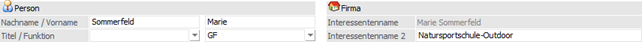 Wenn ein Konto des Typs "Person" auf ein Firmenkonto umgeschlüsselt wird, so werden Interessentenname und Interessentenname 2 in die Adressdaten übernommen umgekehrt genauso.