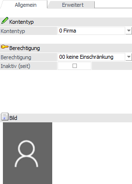 Abhängig vom "Kontentyp" stehen die unter " Adressdaten" nicht angezeigten Eingabefelder hier zur Verfügung.