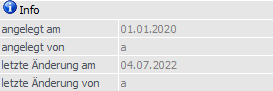 Ø angelegt am / angelegt von / letzte Änderung am / letzte Änderung von