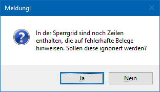 Wenn zu dem Zeitpunkt der Dateierstellung noch Fakturen in der "Fehler"-Tabelle aufgeführt sind, dann erscheint folgende Hinweismeldung:
