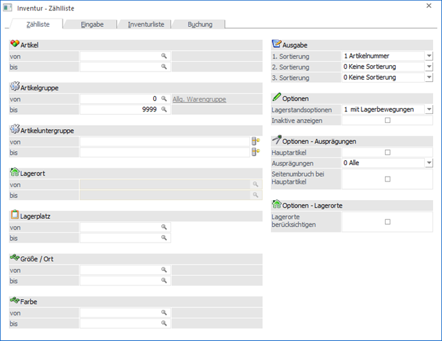 Die Inventur kann mit oder ohne zuvor (fest) definierten Zähllisten durchgeführt werden. Die Anlage solcher Listen findet in dem Programmbereich Definition - Zählliste statt.