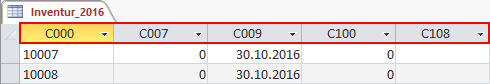 Spaltenbezeichnungen gemäß Datenbank (z.B. C007) benannt.