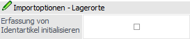Die Initialisierung wird nur durchgeführt, wenn eine Erfassung mit Menge 1 für einen Identartikel mit Lagerort importiert wird. Zusätzlich darf die Option "bestehende Erfassungen ergänzen" nicht aktiviert sein.