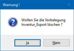 Wird mit einer bestehenden Vorbelegung gearbeitet und der Ex- bzw. Import mit Hilfe der Taste F5 bzw. des Buttons "Ok" gestartet, erfolgt eine Sicherheitsabfrage, ob mögliche Änderungen der Einstellungen in der Vorbelegung gespeichert werden sollen.