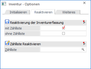 Im Register "Reaktivieren" können historisch Inventurerfassungen reaktiviert werden.