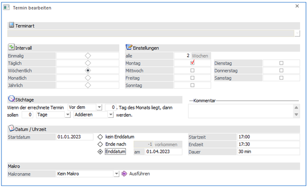 verzweigt. Hier können detaillierte Definitionen eines Termins eingegeben