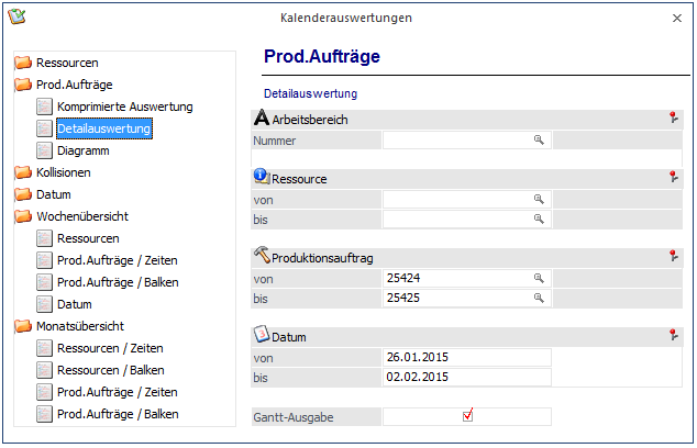 können die Einträge im Produktionskalender ausgewertet werden (wann was verfügbar - reserviert ist).