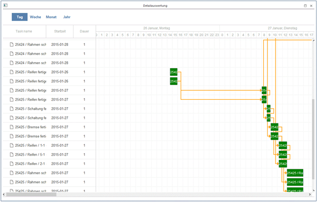 Kalenderauswertung, Variante "Detail Auswertung", als Kalender/Gantt-Ausgabe: