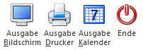 Mit diesem Button wird die Kalenderauswertung auf den Drucker (bzw. Spooler) ausgegeben. Die Auswertung wird mit einem WinLine-Formular ausgegeben (abhängig von der selektierten Ausgabe mit einer Variante vom Formular: P99W81***).