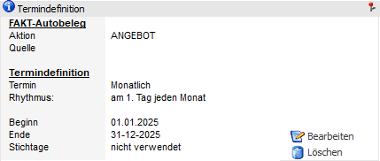 Im Bereich "Termindefinition" wird die gesamte Terminserie, zu welcher der gewählte Termin gehört, bearbeitet.