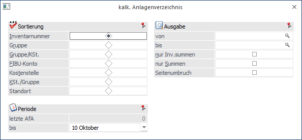 Wird diese Checkbox aktiviert, werden im kalk. Anlagenverzeichnis nur Summenwerte angezeigt.