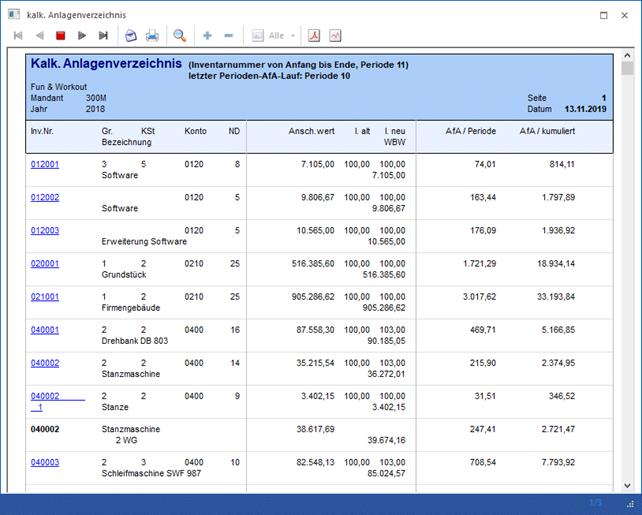 Es werden pro Inventargut nur Summen ausgewiesen, d.h. sollte es Subanlagen dazu geben, werden diese NICHT angezeigt.