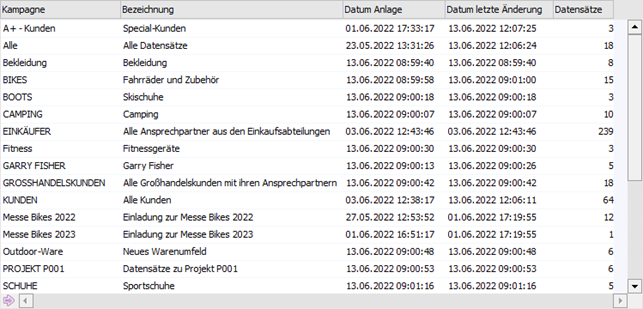 Durch Anwahl des Buttons "Anzeigen" bzw. der Taste F5 wird die Kampagnensuche gestartet.