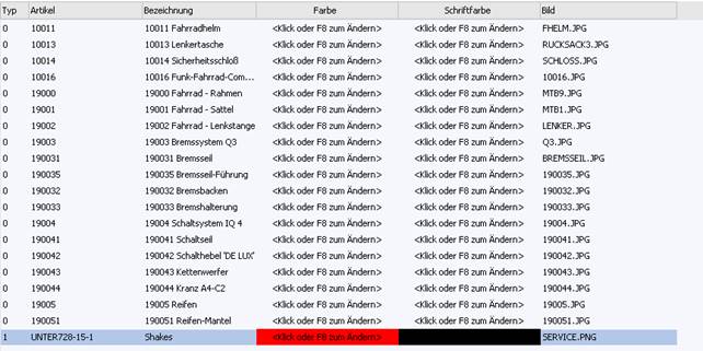 Durch Anwahl der Funktion kann für die gewählte Artikelzeile die Bezeichnung abgeändert werden.