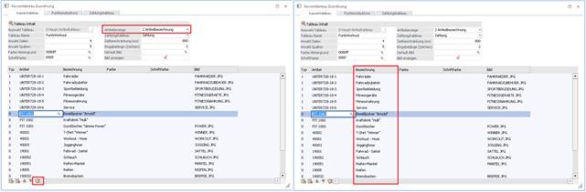 Wenn der Button "Bezeichnung für alle übernehmen" gedrückt wird, werden auch die zuvor manuell abgeänderten Bezeichnungen mit der Artikelanzeige-Einstellung überschrieben.
