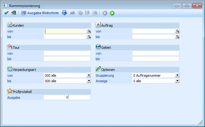 Ausgabe des Kommissionierungsprotokolls am Bildschirm oder Drucker