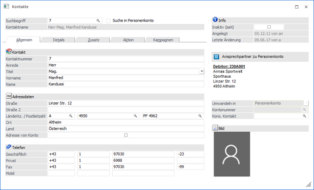 ü jenes Personenkonto hat, zu dem der Kontakt als neuer Ansprechpartner hinzugefügt werden soll.