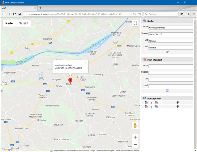 Wenn dieser Button angeklickt wird, wird - sofern eine Internetverbindung vorhanden ist - eine Internetseite geöffnet, in welcher der Standort der gewählten Adresse angezeigt wird.