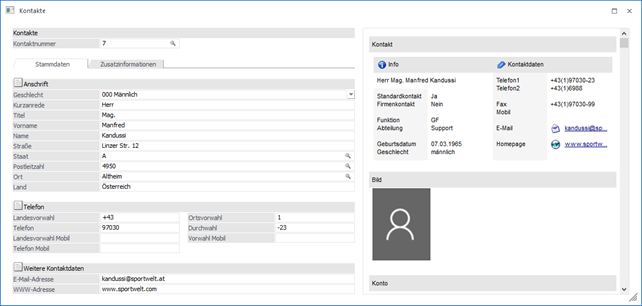 Kontakt um einen Ansprechpartner oder einen Firmenkontakt eines Personenkontos