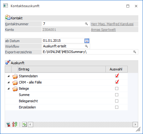… können für einen Kontakt (Ansprechpartner) alle Auswertungen, welche bereits in der Arbeiternehmerinfo zur Verfügung stehen, in einer einzelnen Liste ausgegeben werden.
