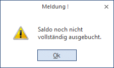 Es erfolgt eine Hinweismeldung, wenn der Differenzbetrag nicht null ist. Die vorgenommenen Änderungen werden nicht gespeichert.
