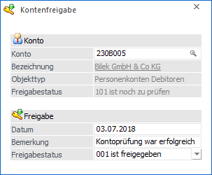 Wurde in der WinLine START unter "Freigabe" definiert, dass Personenkonten erst bestimmte Prüfstufen durchlaufen und freigegeben werden müssen, bevor sie z.B. bebucht werden können, kann im Programm "Kontenfreigabe" sehr einfach der Freigabestatus editiert werden (könnte auch über den Button "Freigabe" im Adressstamm des Personenkontenstammes erfolgen).