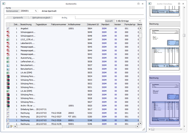 Durch Anklicken des Formular-Buttons kann eine Vorschau der Archiv-Dokumente angesehen werden. Voraussetzung dafür ist, dass es sich dabei um einen WinLine Beleg oder um eine Grafik handelt.