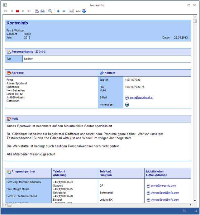 Auf dem Kontenstammblatt werden alle Stammwerte sowie die aktuellen Salden und Budgetwerte angezeigt.
