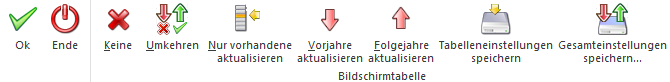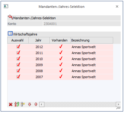 Über die Buttons unterhalb der Tabelle kann die Selektion der Wirtschaftsjahre beeinflusst werden: