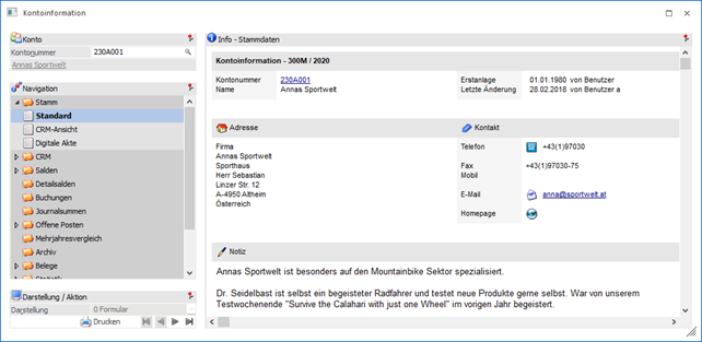 Je nach Kontotyp (Sachkonto, Personenkonto, Interessent) wird dessen Stammdaten-Programm geöffnet und das Konto geladen.