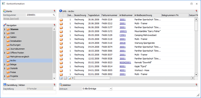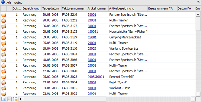 In der Tabelle werden alle Archiveinträge des Kontos, gemäß der nachfolgenden Selektion, aufgeführt. Die Anzeige eines Archivdokuments kann über 2 Wege erfolgt: