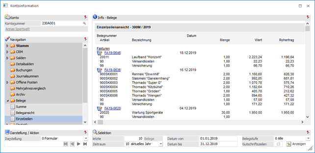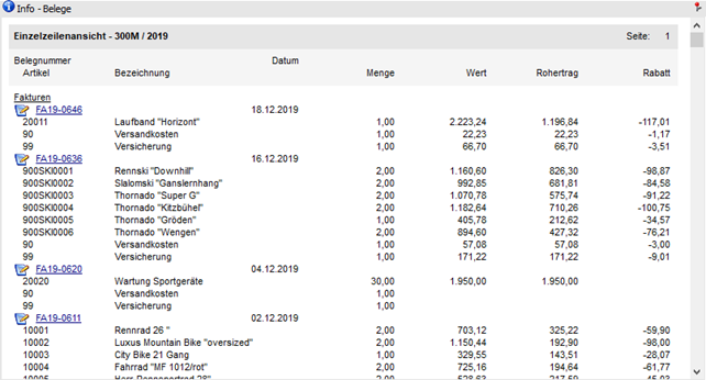 In dieser Ansicht werden die Belege mit allen dazugehörigen Einzelzeilen (Artikel) angezeigt.