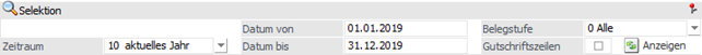 Durch Aktivieren der Option "Gutschriftszeilen" werden auch Belegzeilen in den Werten berücksichtigt, die mit dem Zeilentyp "6 - Gutschrift" erfasst wurden. Solche Zeilen verändern immer nur den Wert, nicht den Rohertrag oder den Rabatt.