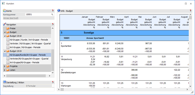 In diesem Bereich werden alle Budget-Auswerte-Ansichten angezeigt, welche in der WinLine FAKT (Stammdaten - Budget - Budget Verwaltung) angelegt wurden.