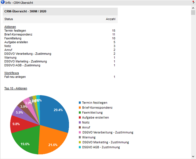An dieser Stelle wird die CRM-Übersicht, gemäß der nachfolgenden Selektion, dargestellt.