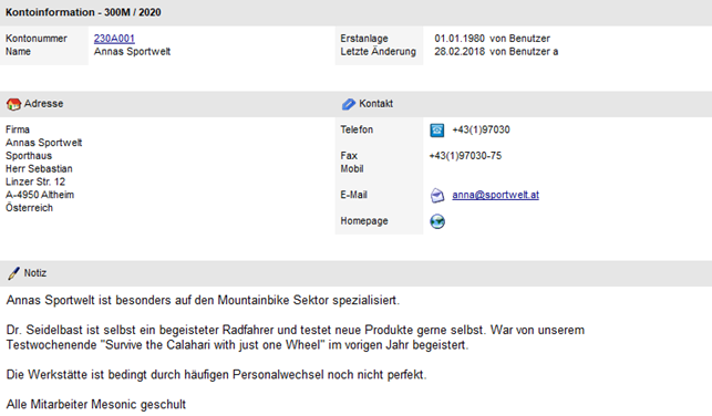 In den ersten beiden Teilen erhalten man einerseits die Informationen bezüglich der Anschrift des Kontos, den Kontaktdaten und den Inhalt des Registers "Notiz" aus dem Personenkontenstamm.