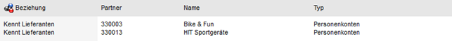 Die Beziehungen, welche bei dem Konto hinterlegt wurden, werden in diesem Datenbereich angezeigt.