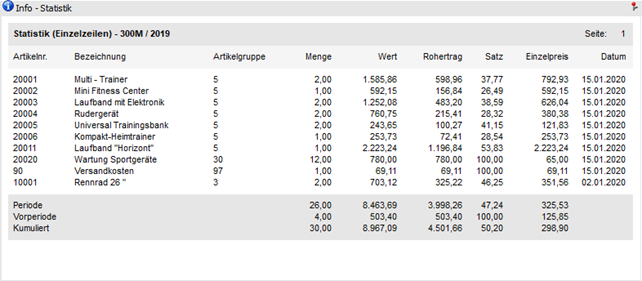An dieser Stelle werden die Statistikzeilen, gemäß der nachfolgenden Selektion, dargestellt. Die Art der Anzeige kann mit Hilfe der Option "Darstellung" gewählt werden.