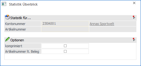 Über das geöffnete Fenster "Statistik Überblick" kann die Auswertung geändert werden (z.B. zur Darstellung einer komprimierten Übersicht).