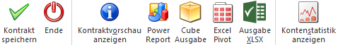 Durch Anwahl des Buttons "XLSX Ausgabe" werden die erfassten Kontraktzeilen in Form einer XLSX-Datei ausgegeben. Hierbei werden nur Zeilen des Typs "1 - Artikel" und "6 - Gutschrift" berücksichtigt.