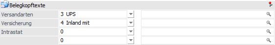 An dieser Stelle stehen bis zu 10 Textzeilen zur Verfügung, in denen spezifische wiederkehrende Textierungen (max. 60 Zeichen pro Text) hinterlegt werden können (z.B. Frachtbedingungen, Spediteur, Kurzbeschreibung des Beleginhaltes oder Art des Geschäftsfalles).