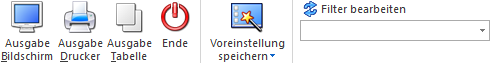 Mit Hilfe des Buttons "Ausgabe Bildschirm" oder der Taste F5 wird die Auswertung am Bildschirm ausgegeben.
