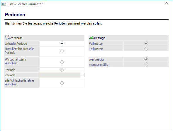 Im letzten Schritt kann noch definiert werden, welche Periode(n) ausgewertet werden sollen, wobei hier folgende Optionen zur Verfügung stehen: