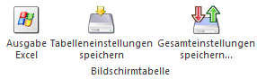 Im Gegensatz zu "Tabelleneinstellungen speichern" können mit "Gesamteinstellungen speichern" mehrere Tabellenaufbauten gespeichert und nach Wunsch geladen werden. Zusätzlich werden Sonderfunktionen der Tabelle (z.B. "Spalte gruppieren") ebenfalls bei der Speicherung bedacht.