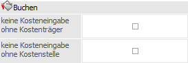 Wenn diese Option aktiviert ist, ist es nicht möglich, einen Buchungsstapel zu verbuchen, in dem KORE-Zeilen ohne Kostenstellen vorhanden sind (ausgenommen sind Buchungsstapel aus der Fakturierung - diese Buchungen werden so übergeben, wie sie in der Fakturierung hinterlegt wurden). Beim Erfassen einer Buchungszeile wird bereits ein entsprechender Hinweis gegeben, dass in einer KORE-Zeile eine Kostenstelle eingegeben werden muss.
